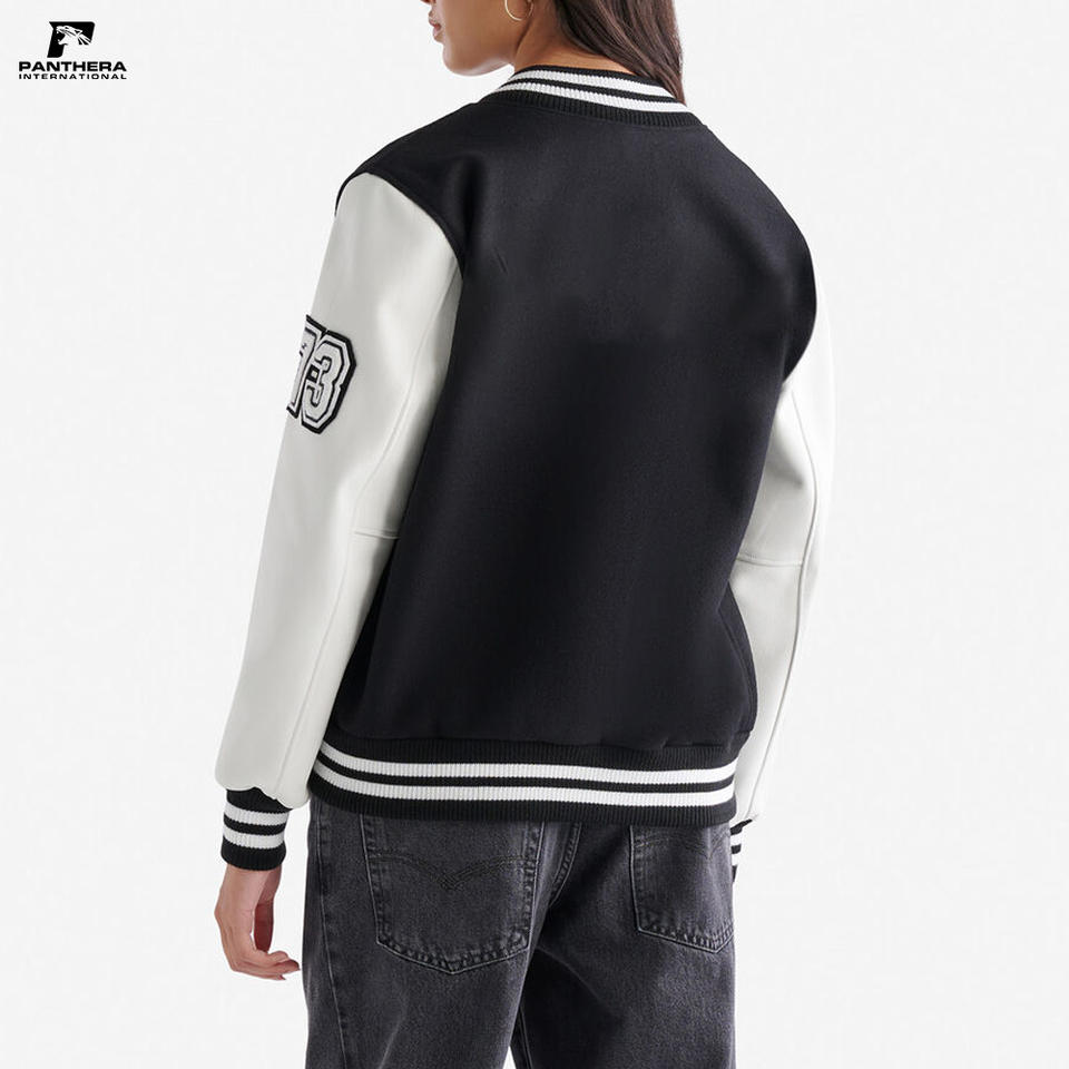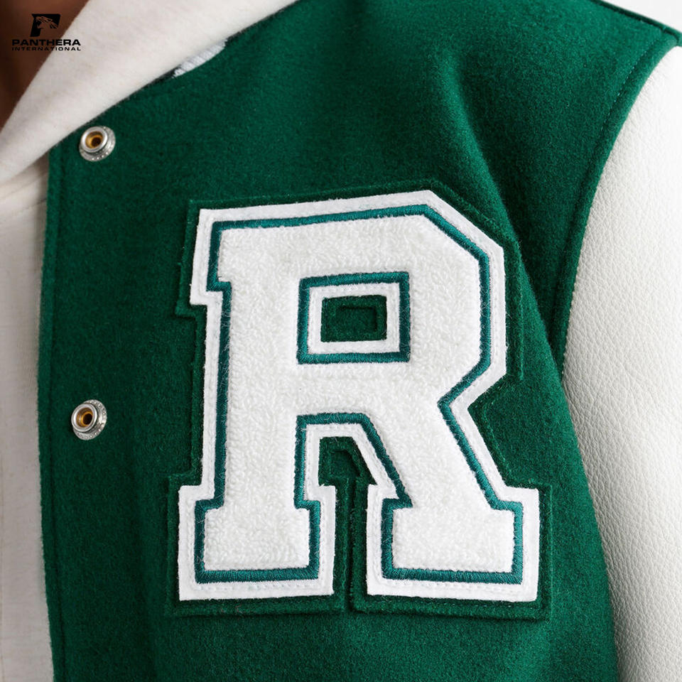Unisex Vintage Varsity Jacket with Stand Collar Chenille Embroidery PU Leather Sleeves 100% Wool Woven Fabric Winter Single Pack