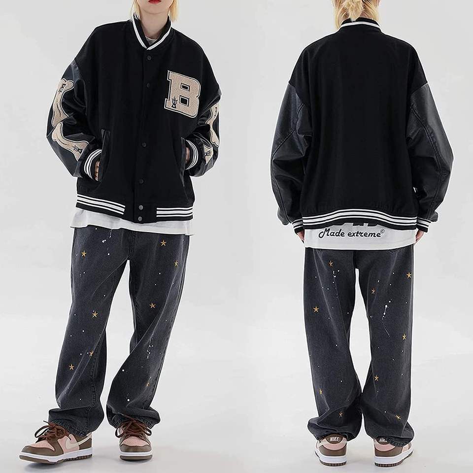 Unisex Vintage Wool College Varsity Jacket Stand Embroidery Pocket Detail New Baseball Bomber Casual Streetwear for Men Women