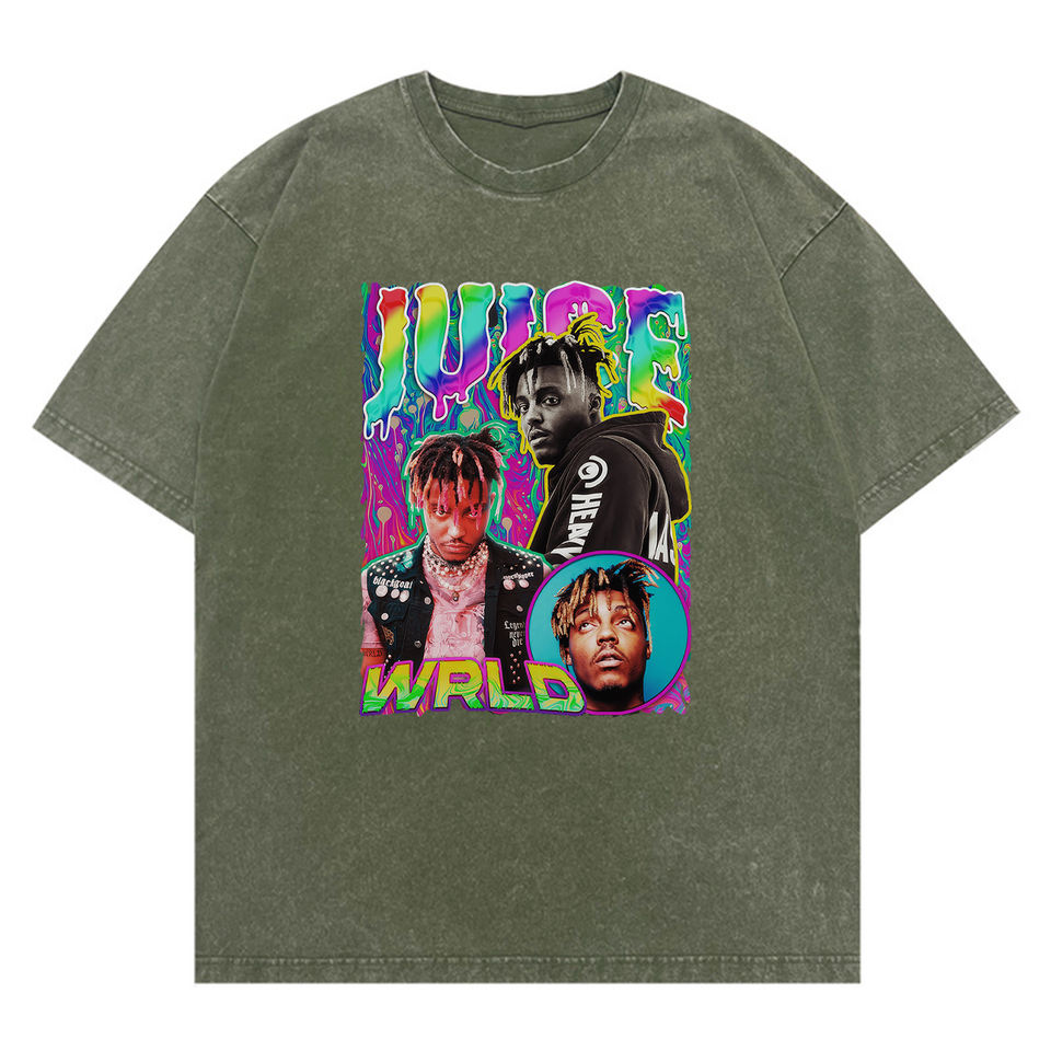 Unisex Washed T-Shirt Juice WRLD Rapper Hip Hop Music Fan Apparel Vintage Concert Graphic Tee