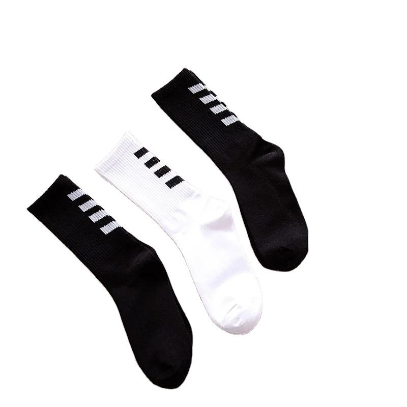 Unisex White Black Crew Socks Solid Color Short Cotton Sock Striped for Women and Men for Spring Summer