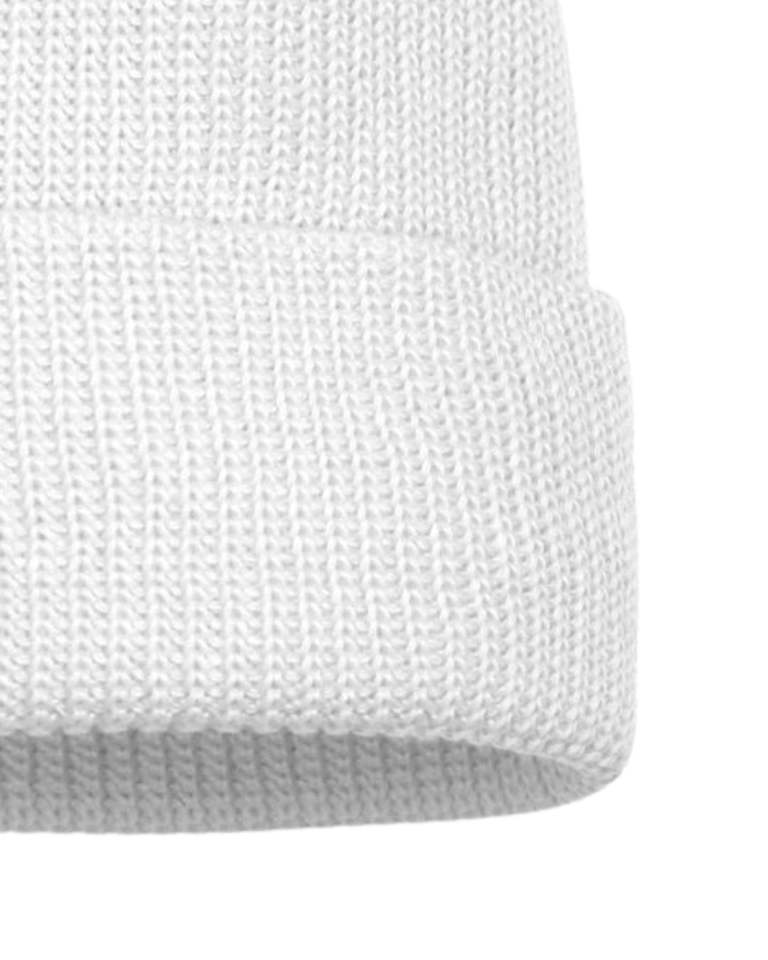 Unisex White Knit Beanie Winter Warm Cuffed Hat Soft Acrylic Ribbed Stretchable Plain Solid Skull Cap Custom Logo OEM Design
