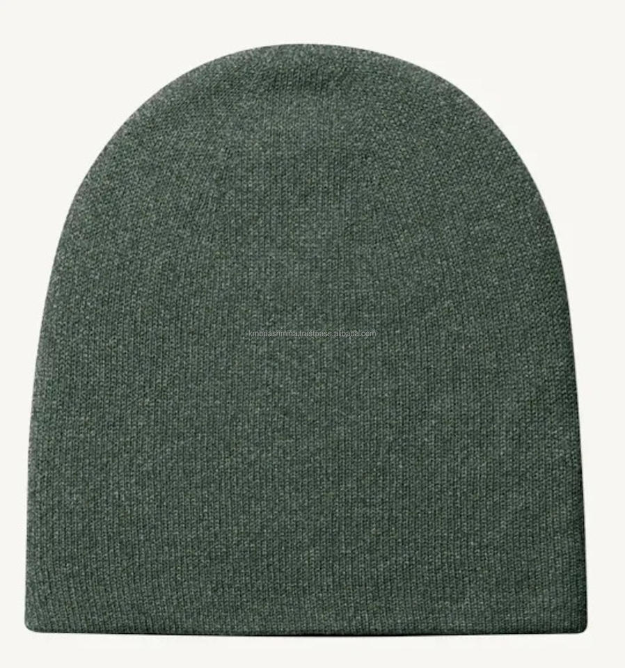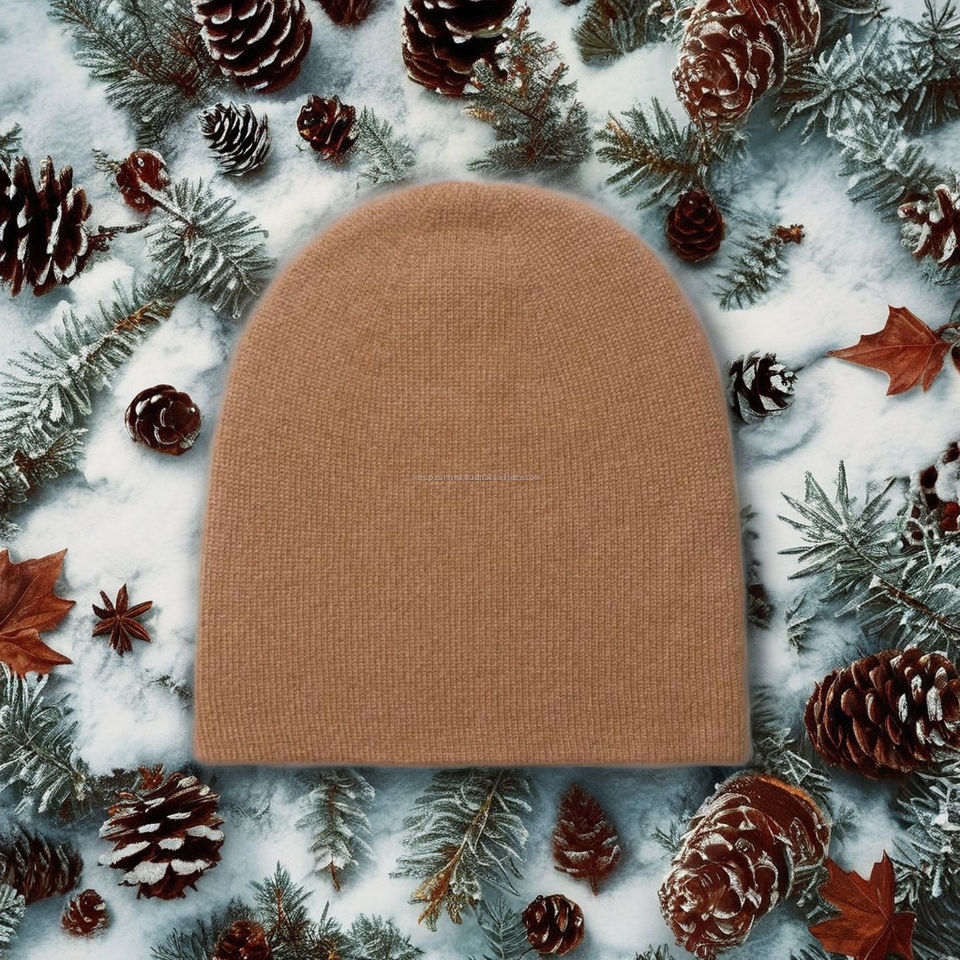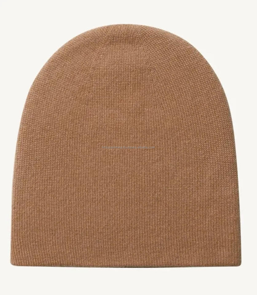 Unisex Winter Beanie Customizable Image Solid Camel Color Cashmere Reversible Hat Stylish Striped Border Handmade Common