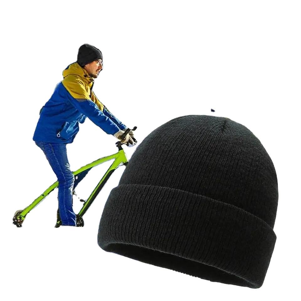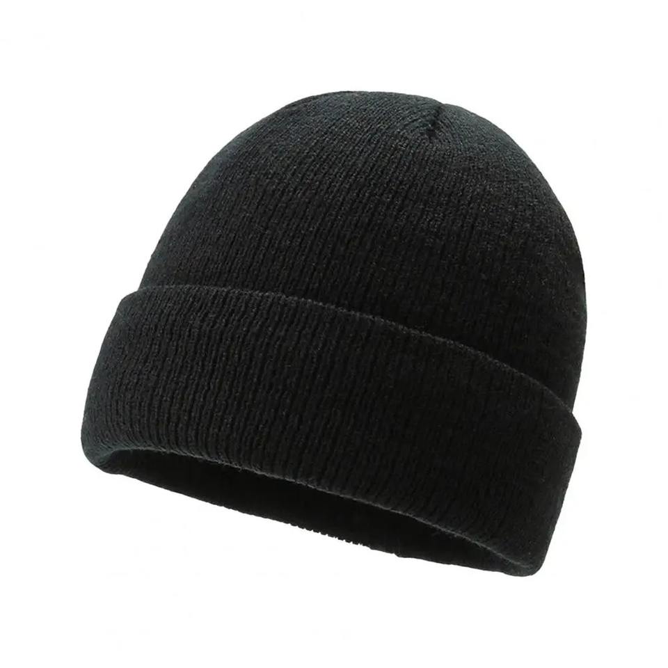 Unisex Winter Beanies Men's Thickened Fleece Knitted Hat Waterproof Fabric Warm Solid Color Elastic Ear Design for Outdoor