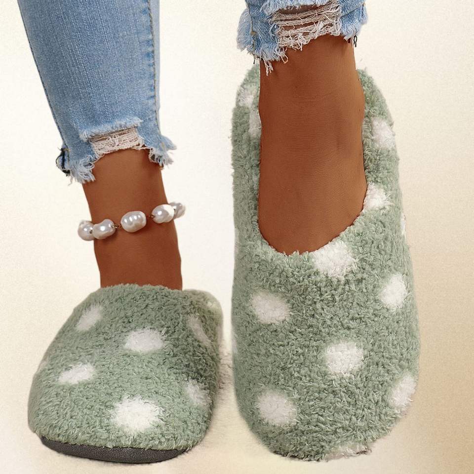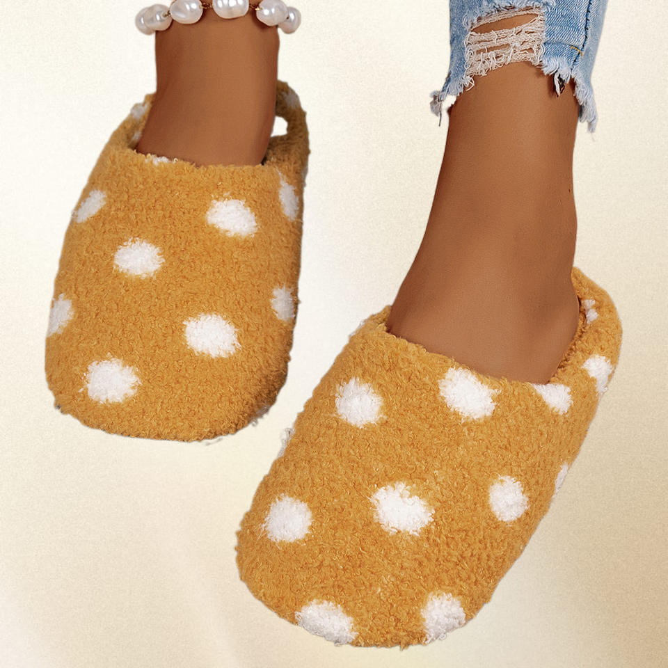 Unisex Winter Indoor Shoes Mute Speckle Fabric with Fluffy Soft Bottom Cotton Suede Dot Thicken Closed Toe Silent Floor for Slip
