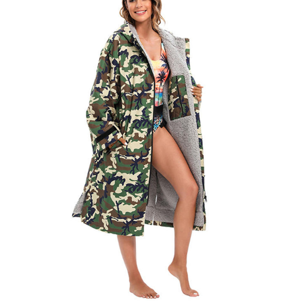 Unisex Winter Long Sleeve Waterproof Dry Changing Robe Swim Parka Over-sized Change Robe Coat with Fleece Lining Front Logo