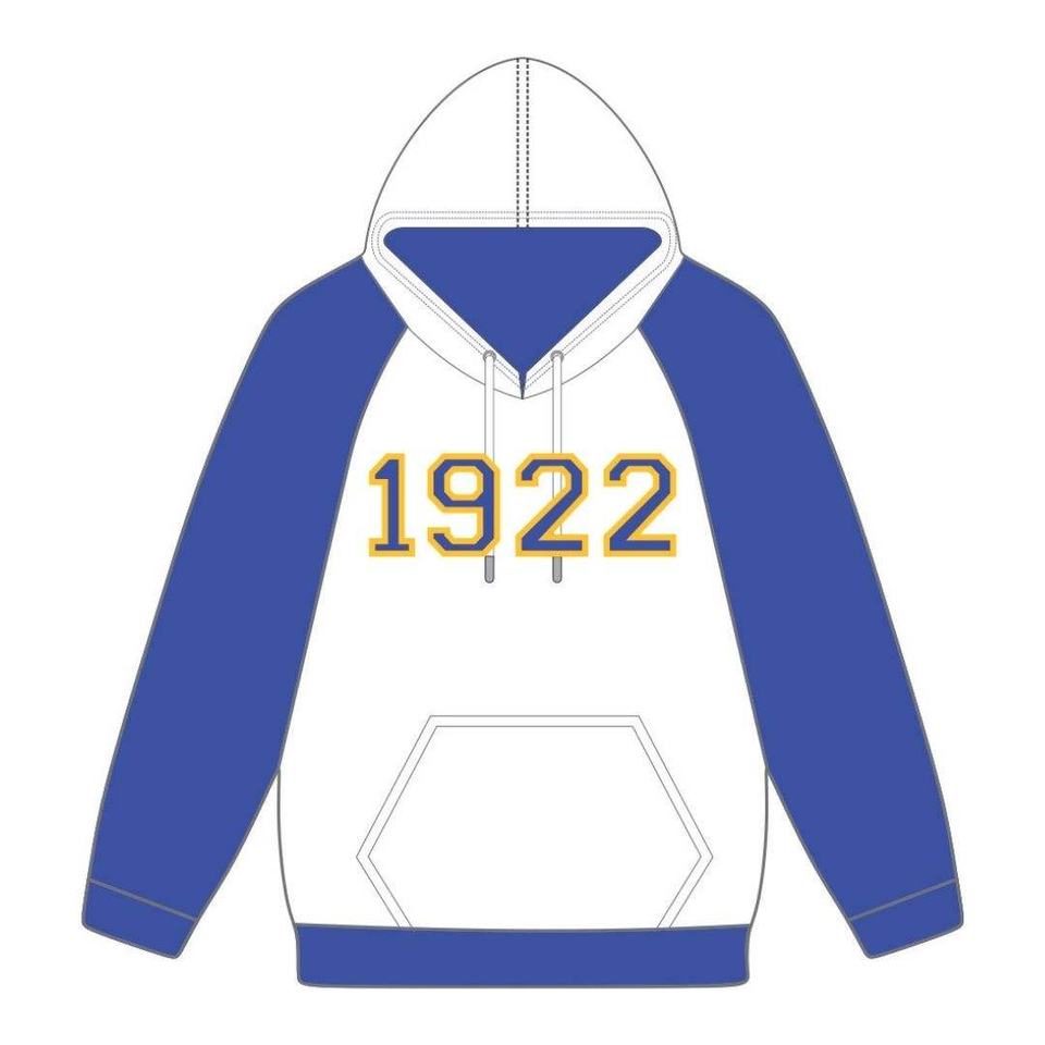 Unisex Winter Pullover Hoodie White Blue Color Block Fleece 100% Bamboo Fiber Number Print Front Pocket Rib Cuffs Casual Wear