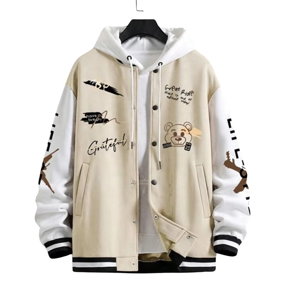 Unisex Wool & Leather Varsity Hoodie Baseball Letterman College Jacket for Men Women Boys & Girls