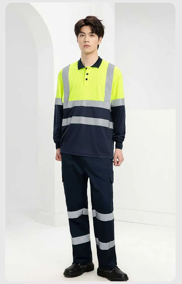 Unisex Work Polo Summer Long Sleeve Hi Vis Workwear Reflective Polo Customized Safety Vest T Shirts