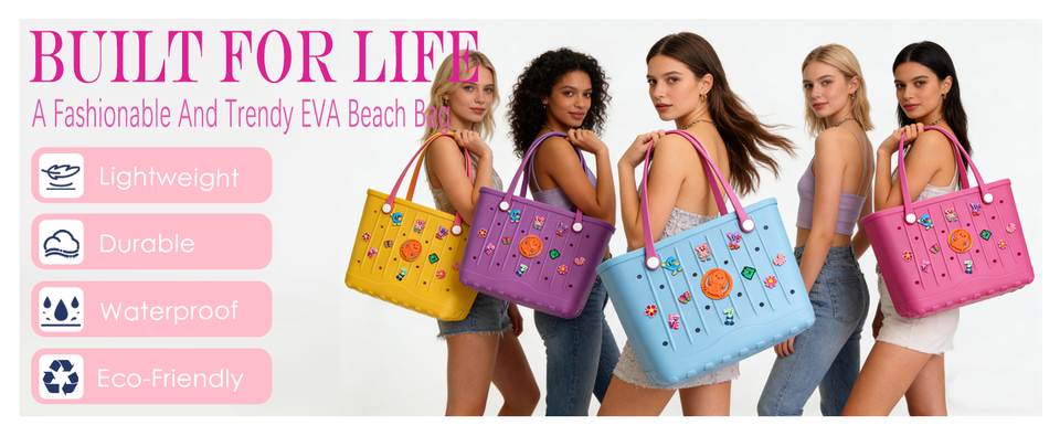 Unisex fashion design waterproof lightweight large-capacity eva beach hole tote bag with charm