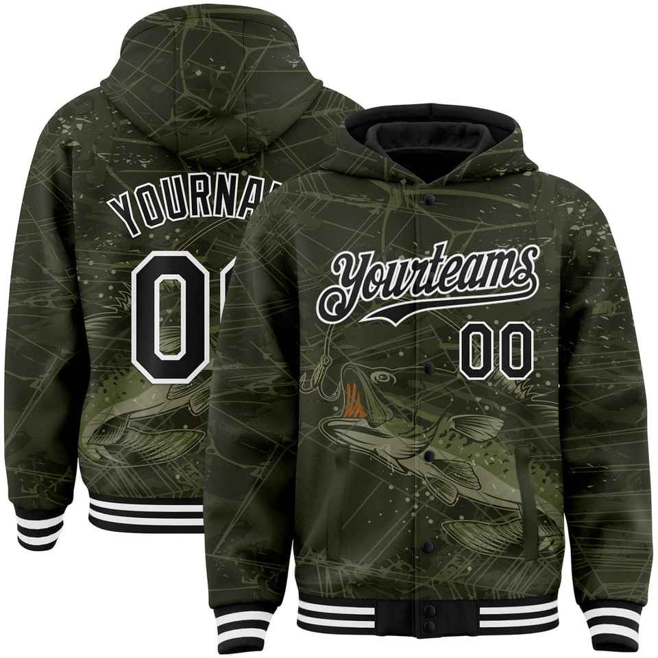 Unisex fishing varsity letterman jacket with hoodie thick fleece material waterproof layer custom printed branding jacket