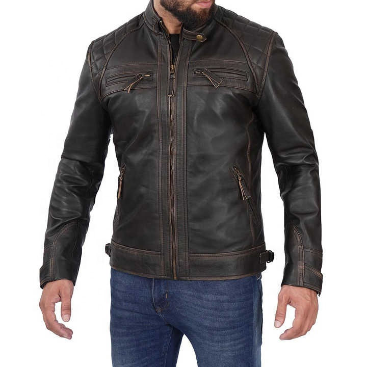 Unisex genuine leather jacket classic biker outerwear warm stylish fashion wear slim fit design wholesale custom logo