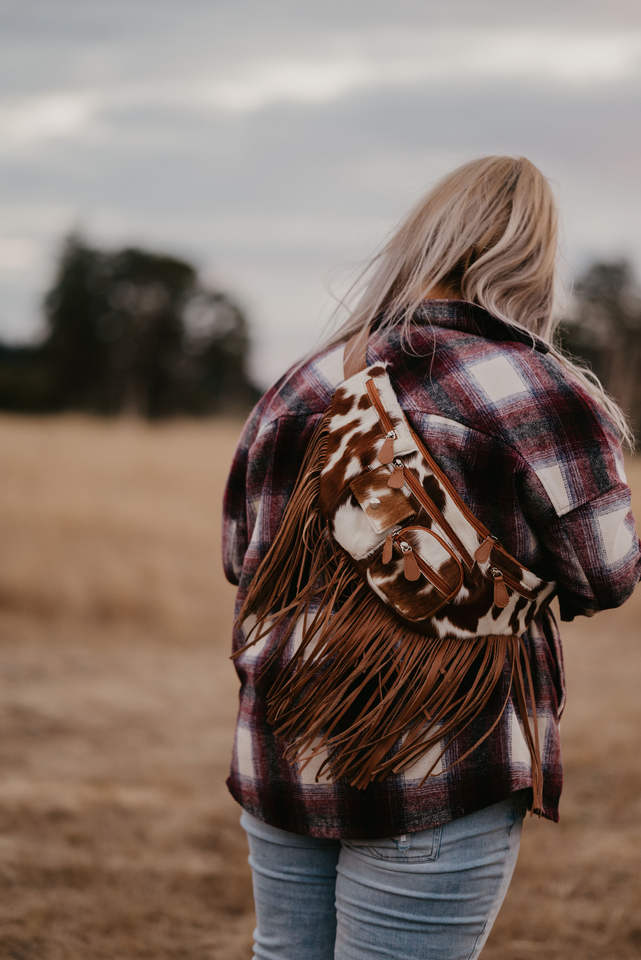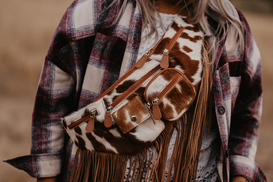 Unisex Real Leather Fanny Bag Waist Backpack Western Cowhide Hair on Unique Fanny-Pack Bag With Adjustable Shoulder Strap