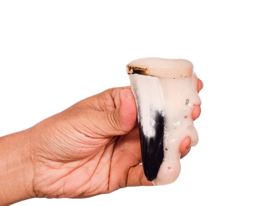 United Trade World Eco-Friendly Custom Logo Ceramic Cups Natural Drinking Buffalo Horn Shot Whiskey Cup for Water Handmade Style