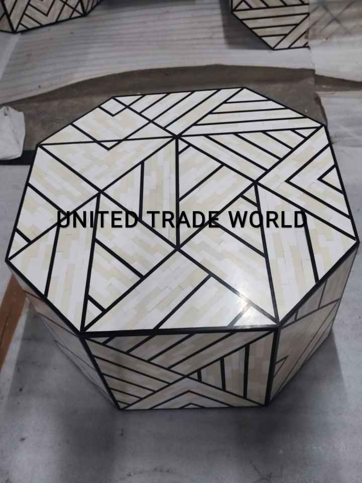 Round:Bone Inlay Coffee Table octagon shape vine inlay table