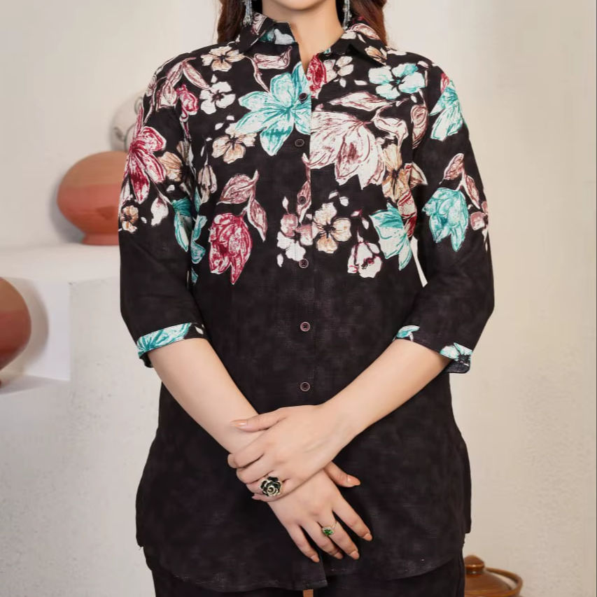 Unity Luxure Premium Floral Printed Co Ord Set in Black with Straight Kurta & Palazzo Pants