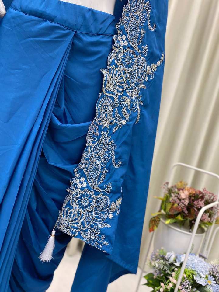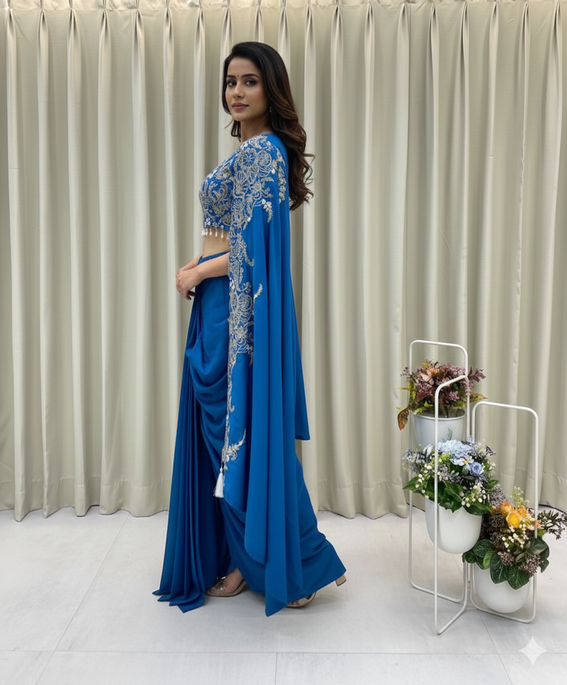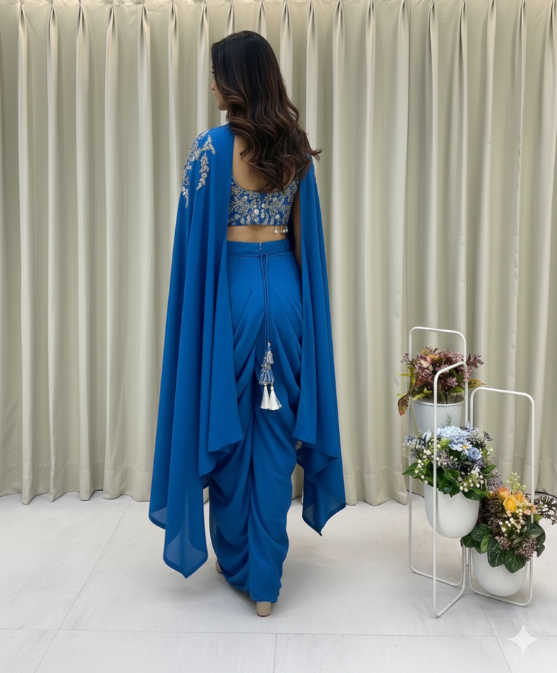 Unity Luxure Premium Georgette Embroidered Saree Set with Designer Blouse & Cape Luxury Party Wear Ensemble