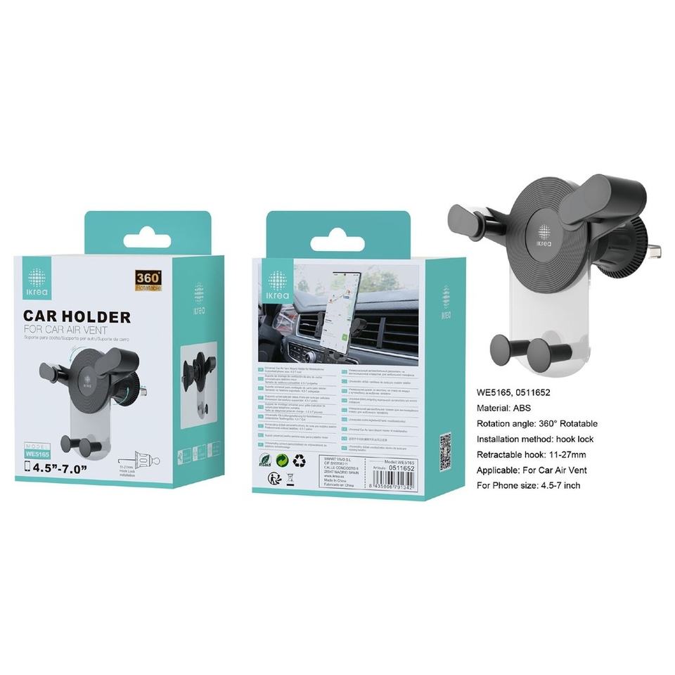 Universal 360° Car Air Vent Mount Holder with Hook, Black - Automotive Accessory
