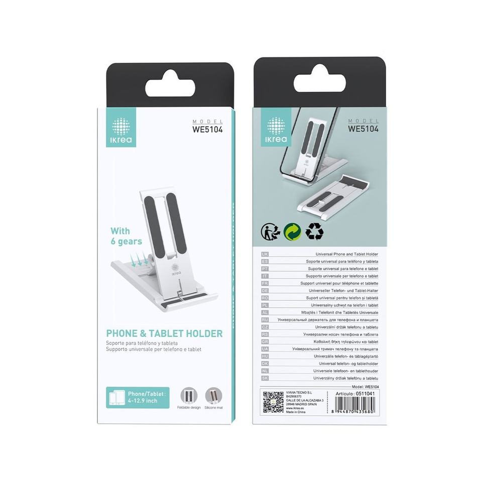 Universal Adjustable 6-Position Mobile Phone and Tablet Stand (4-12.9 Inches) White - Device Accessory