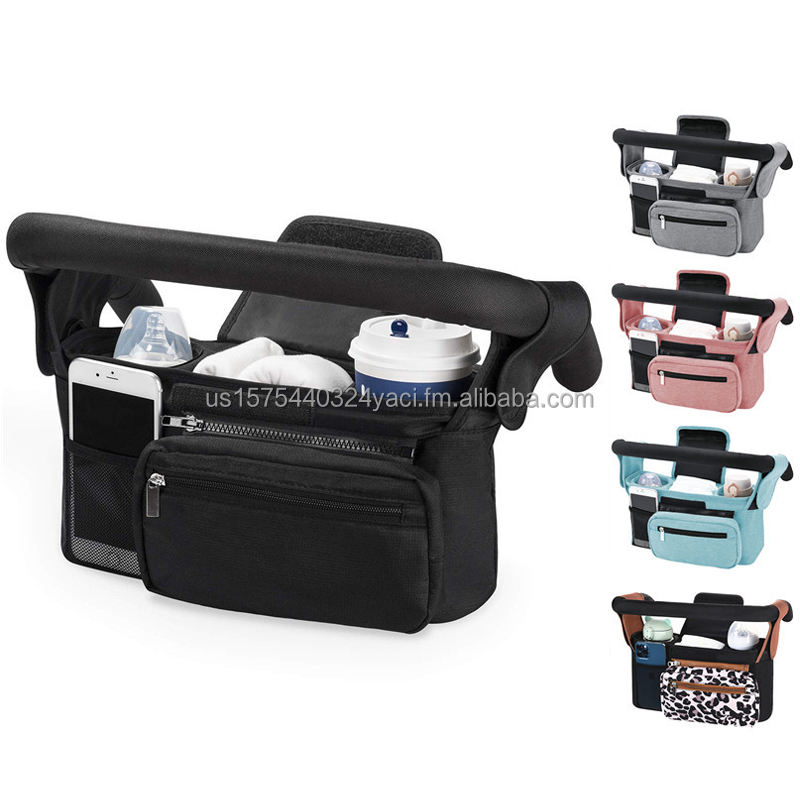 Universal Baby Stroller Bag Organizer with Insulated Cup Holder Diaper Organizer Mommy Shoulder Baby Stroller Hanging Bag