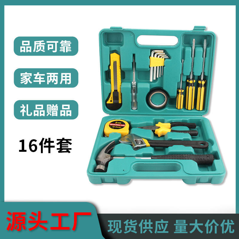 Universal Car Repair Tool Kit 16 Pc Carbon Steel Hand Tools Portable Multi Functional Combination Set For Vehicle Maintenance