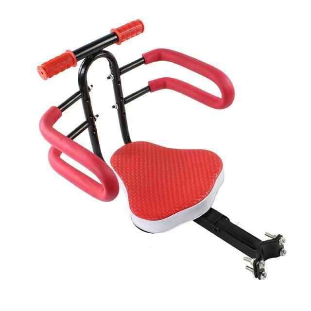 Universal Electric Bike Child Seat Front Folding With Footrest And Railings Red And Black Metal Construction For Kids 2-4 Years