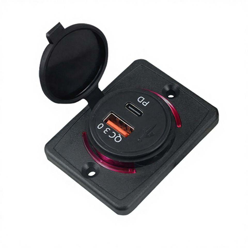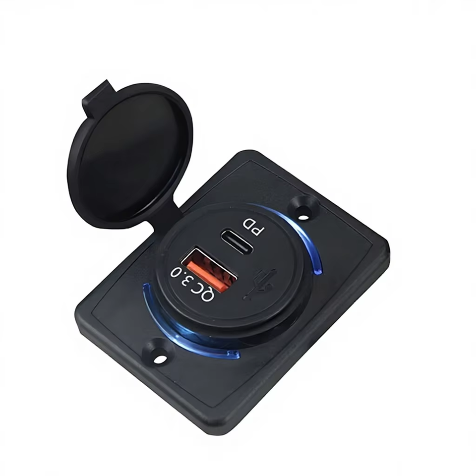 Universal Fitment 12-24V Modified USB Type-C Type-A Fast Charging QC3.0 PD 20W Car Charger Flame-Resistant Material for RV/Boat