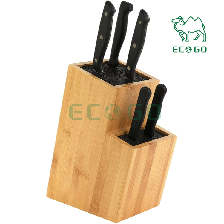 Universal Knife Storage Block Bamboo Two Tiered Slot Wooden Knife Stand Holder