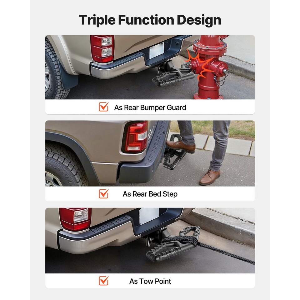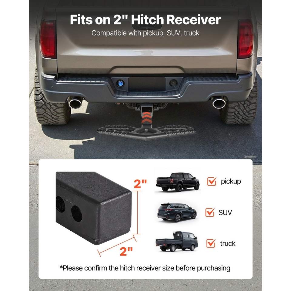 Universal Rear Bumper Guard Protector Wide Non-Slip Tow Hitch Step for 2 Inch Receiver 350 LBS Load Cargo Control Accessories