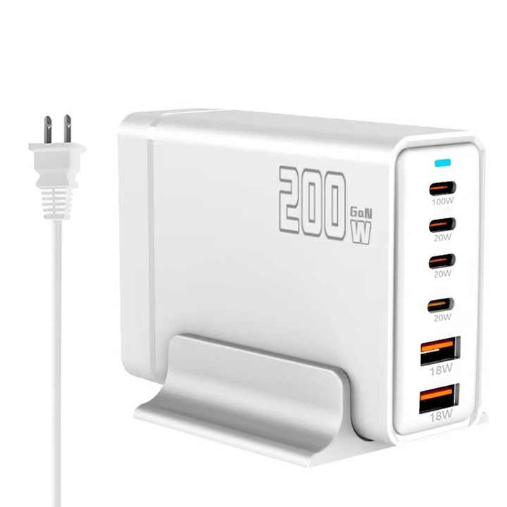 Universal USB C Charger 4C2A 200W GaN 6 Port 200W Fast Charger Supply Desktop Adapter with PD Function for Laptop Mobile Phone