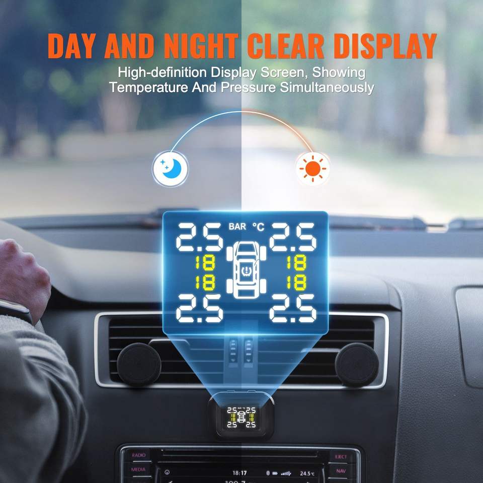 Universal Wireless RV/Car TPMS Alarm System Waterproof Tire Pressure Monitoring Sensors Set W/ 7.3-87 PSI Range