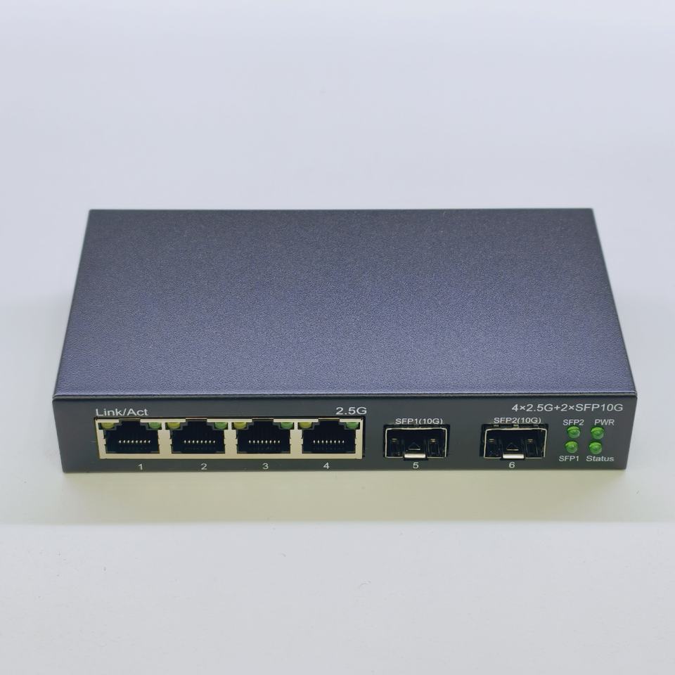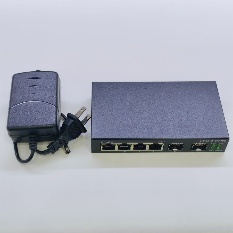 Unmanaged 4-Port 2.5G Desktop Ethernet Switch with 2*10G SFP+ Plug & Play IEEE802.3af/at PoE Full-Duplex Communication