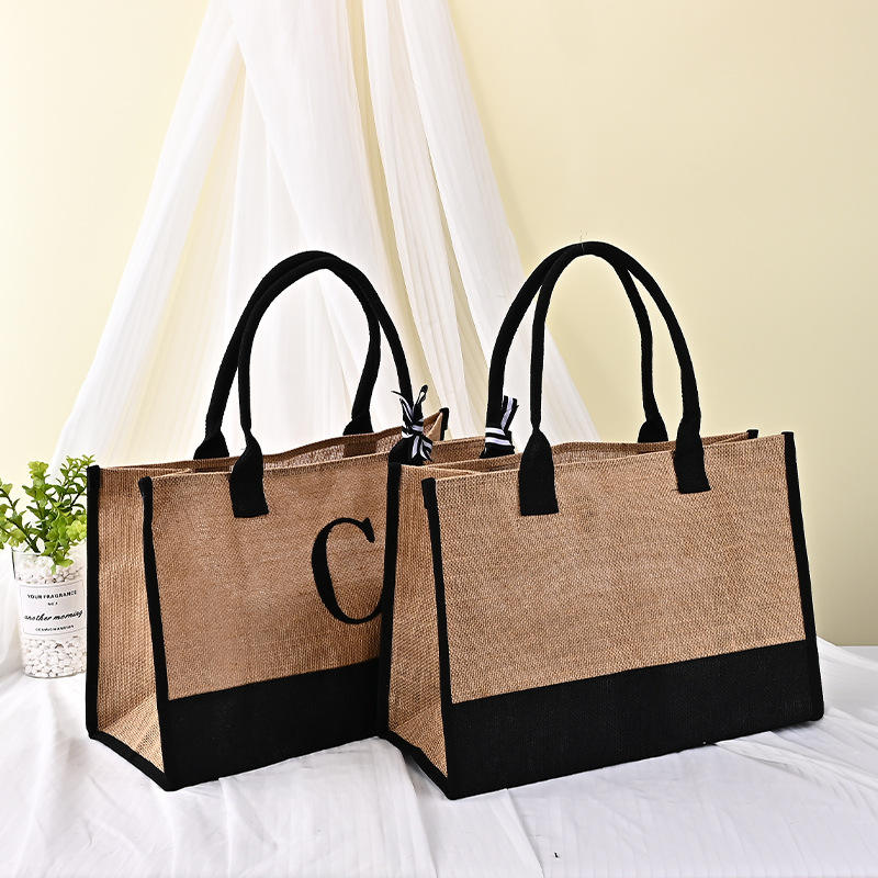 Unprinted Retro DIY Jute Handbag Custom Letter Design Waterproof Canvas Handled Bag Cotton Hemp Shopping Bag Linen Gift Bag