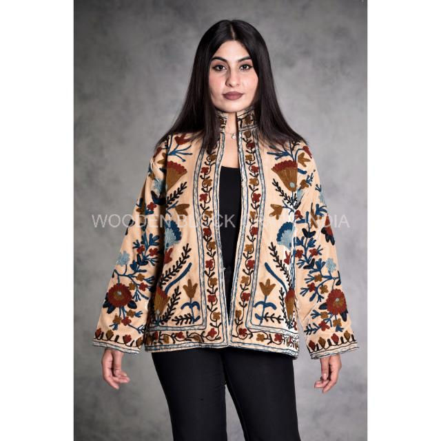 Unravel Mystery Women's Vintage-Inspired Quilted Jacket Blazer Bohemian Dream Suzani Splendor Intricate Embroidery Exotic Cotton