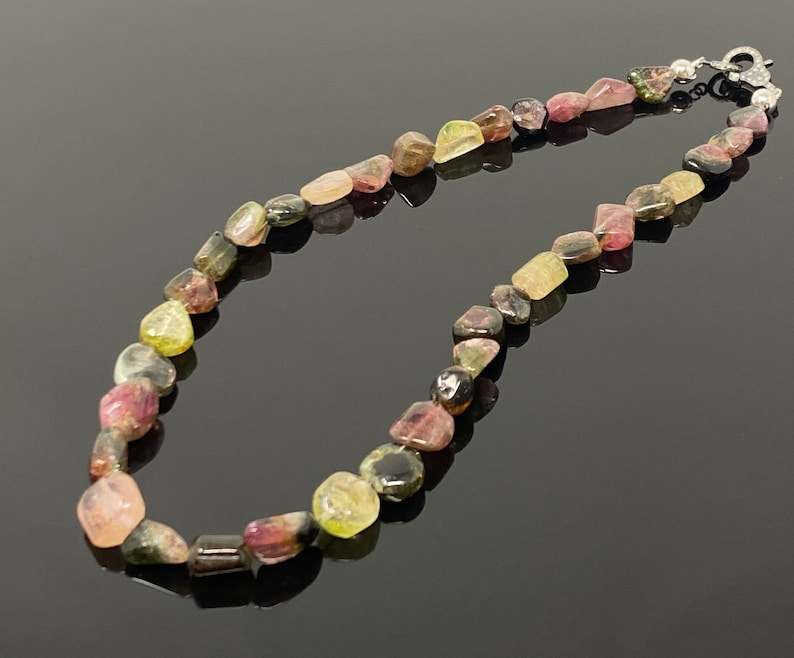 Unshaped Blue Tourmaline Necklace with Lock Natural Gemstone Strands for Engagement Beautiful Stone Beads Gift