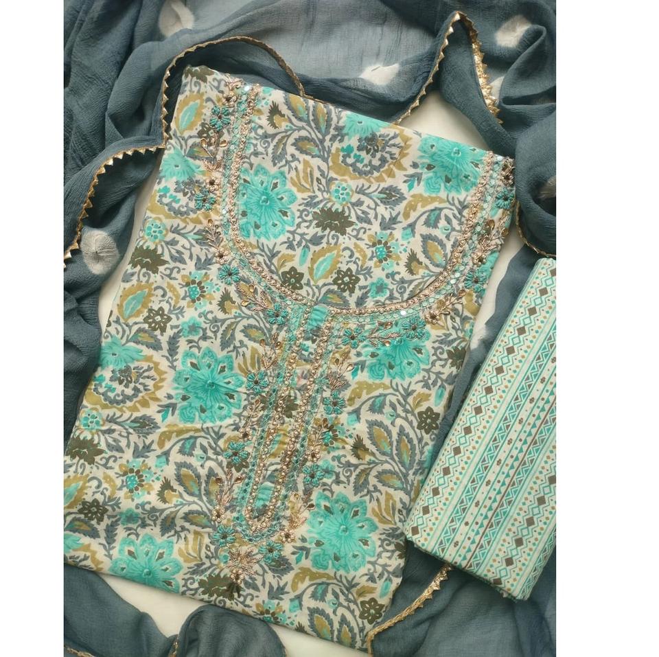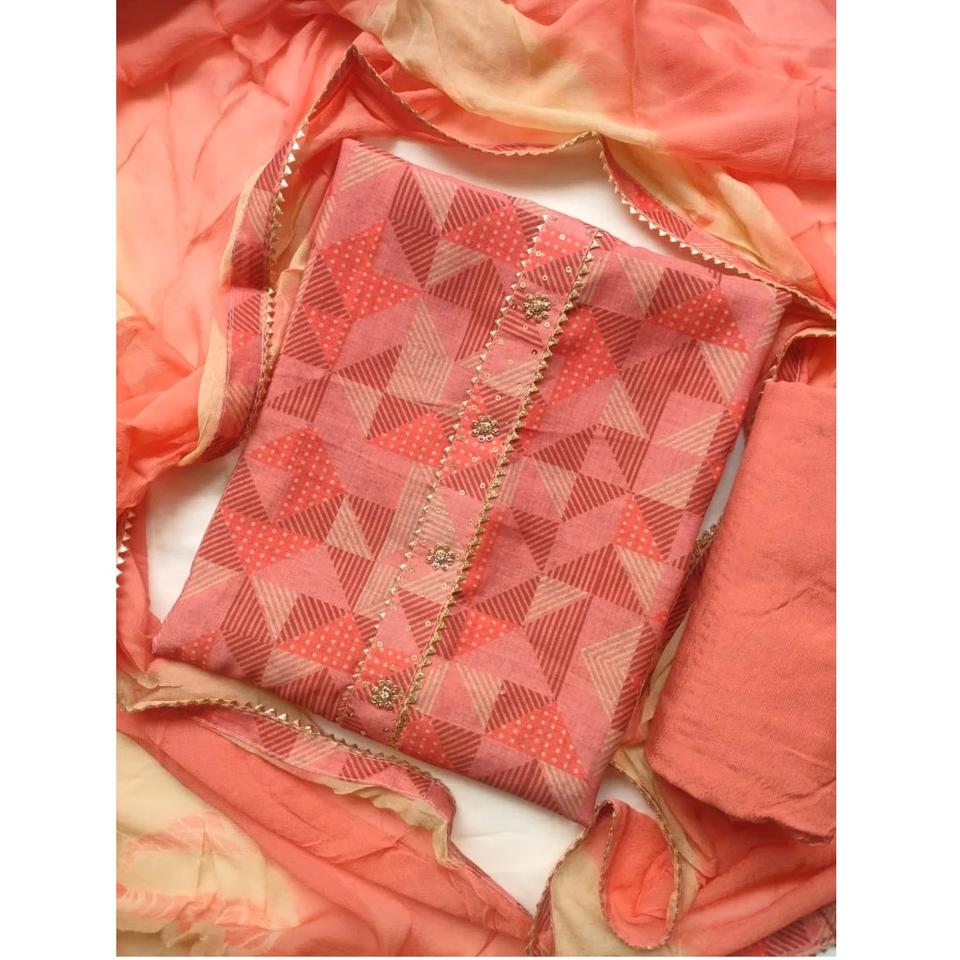 Unstitched Salwar Kameez Women Traditional Indian Party Workwear Two-Piece Set Breathable Embroidery Linen Suit Sets Breathable