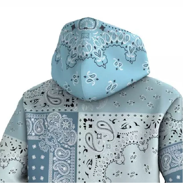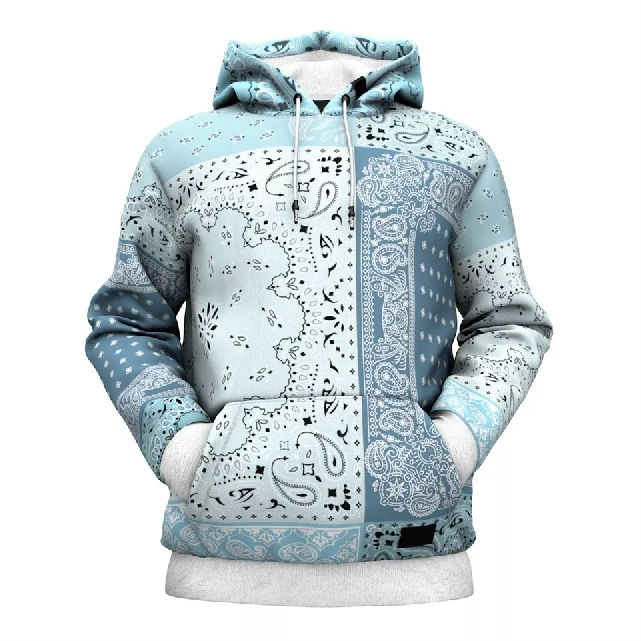 Up Felt Custom Patchwork Bandana Print Hoodie Men Streetwear Oversized 100% Cotton Hoodie For Streetwear