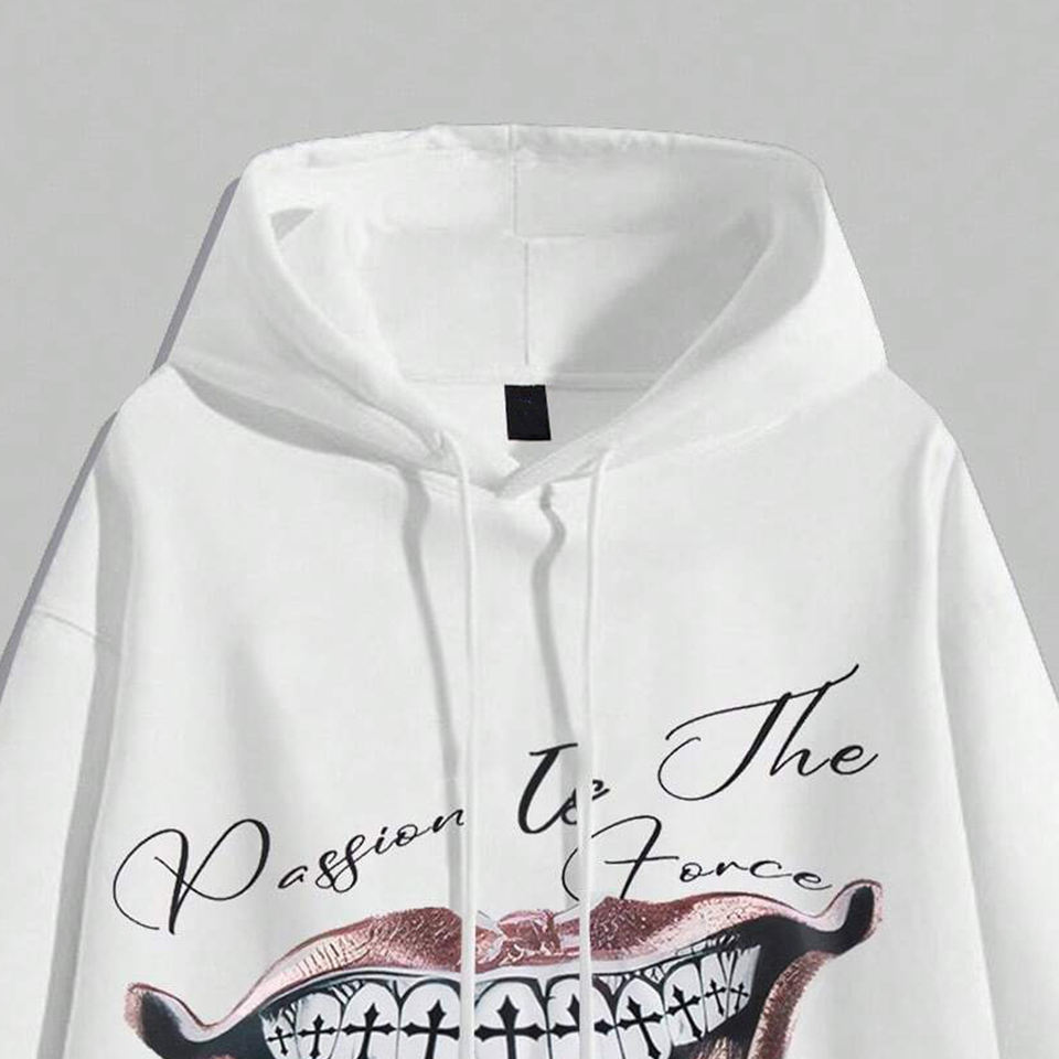 Up-Felt-Impex Trendy Men's Slogan Graphic Drawstring Hoodie With Smile Print Hoodie Drop Shoulder Design for Casual Wear Hoodies