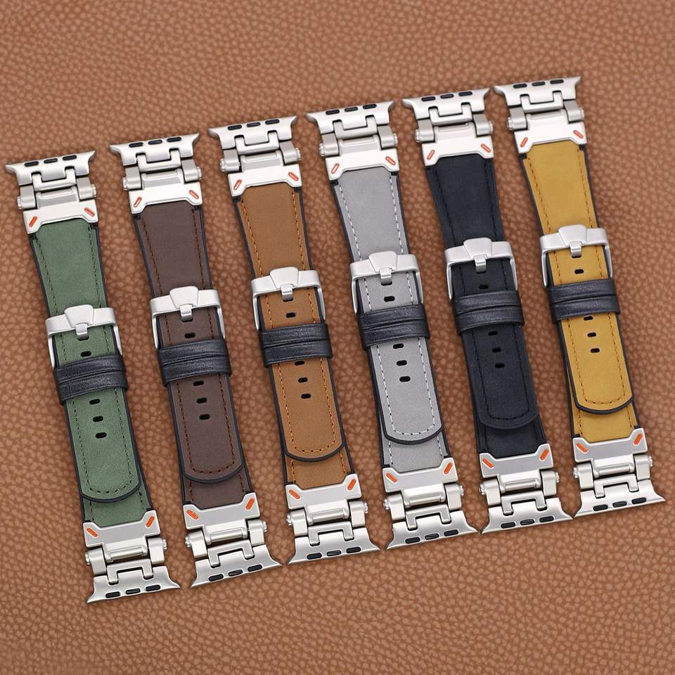 Upro Genuine Leather silicon hybrid watch band for Apple Watch Strap for IWatch SE 6 7 8 9 10 11 Size 42 46 49mm