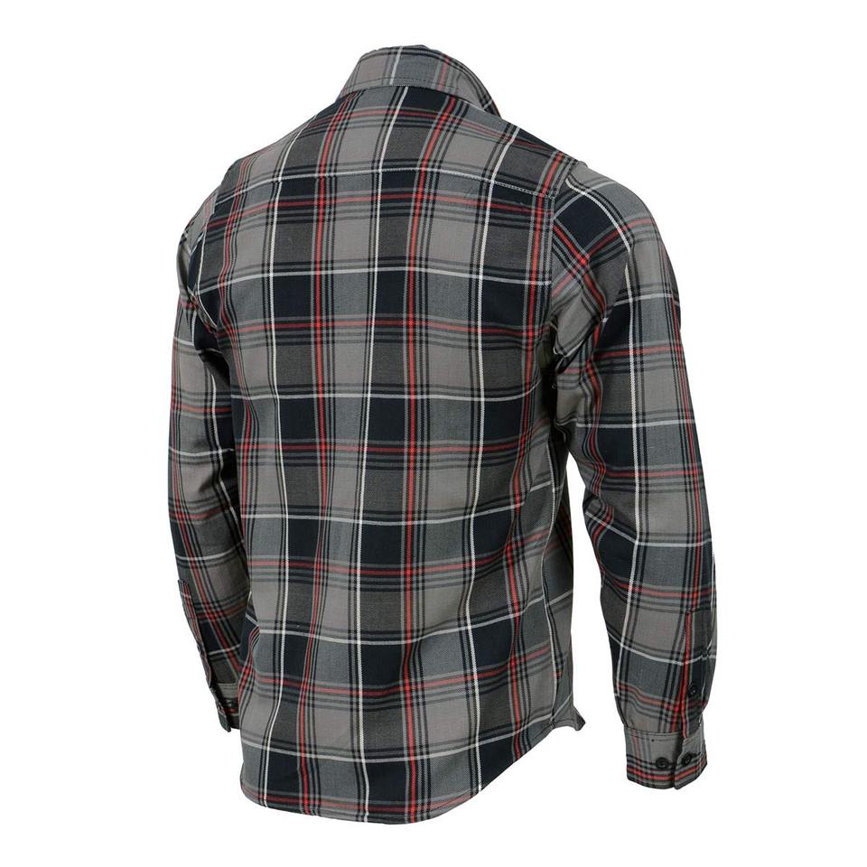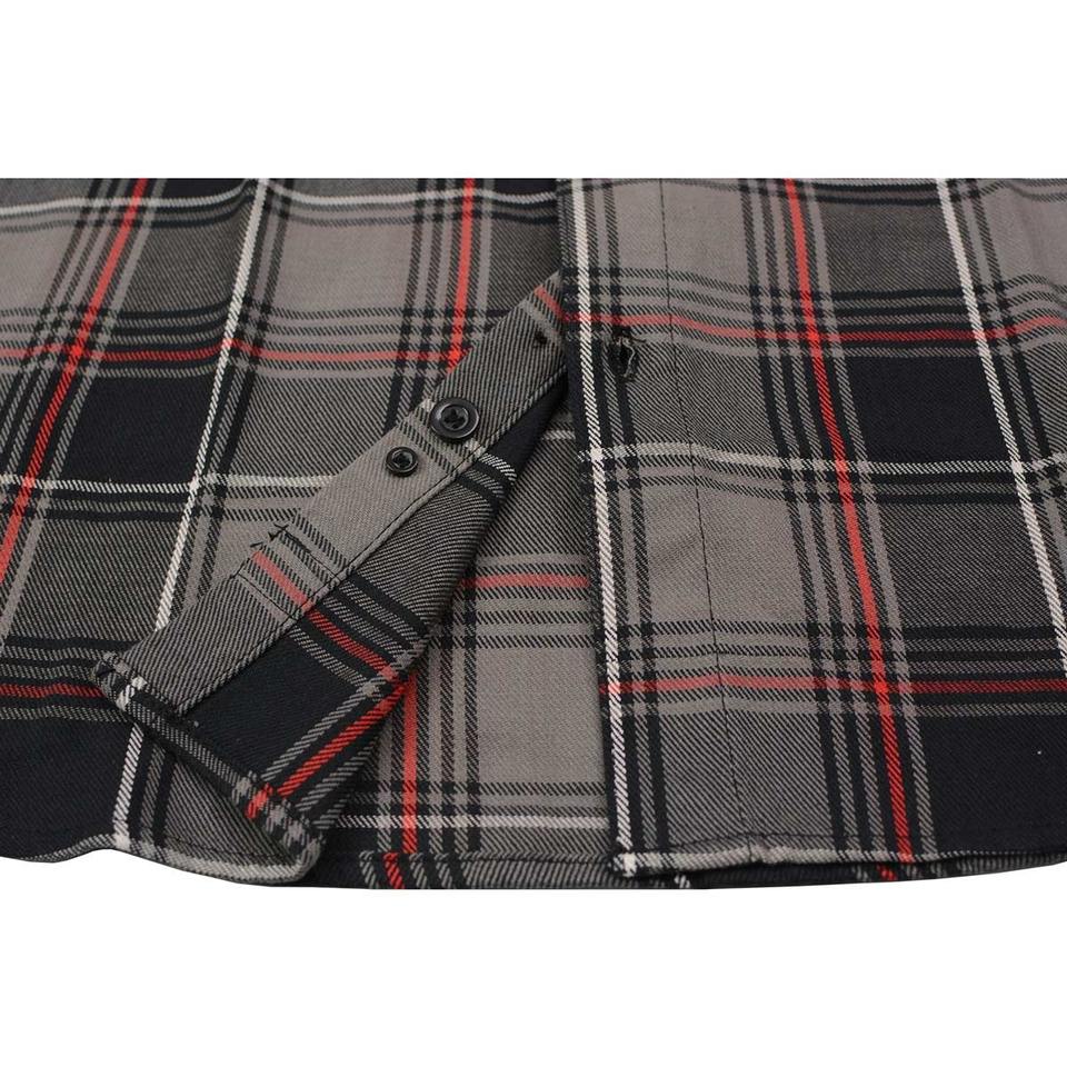Urban Forge Shadow Plaid Utility Shirt Premium Grey & Red Checkered Flannel Button Down with Dual Pocket Streetwear
