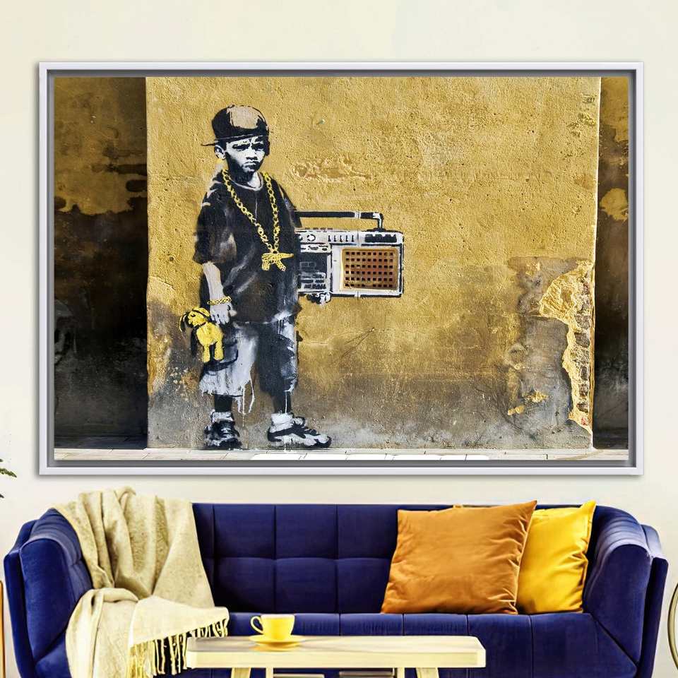 Urban Graffiti Banksy-Inspired Printed Canvas Art for Modern Decor,1P:White Framed