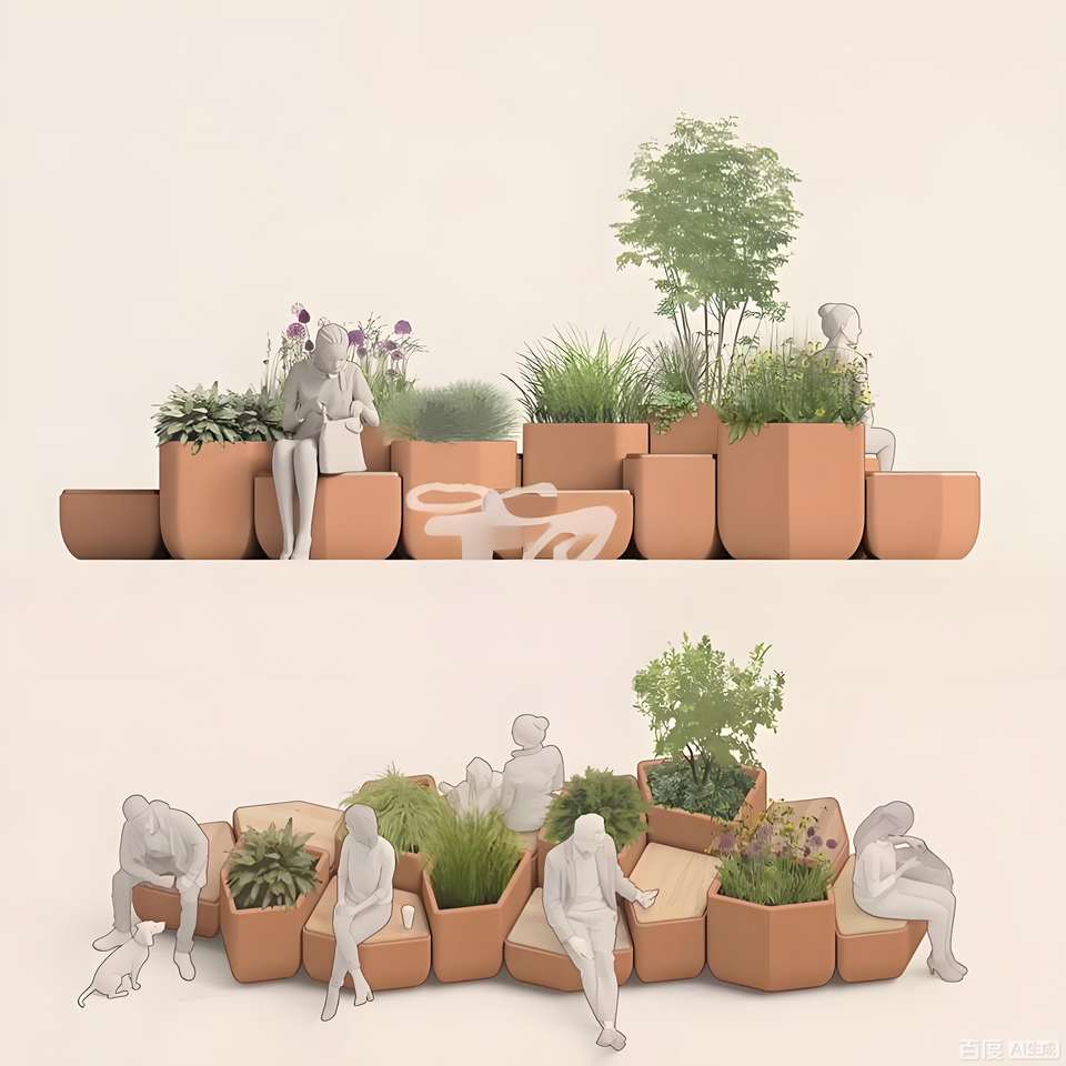 Urban Landscape Square Street Chairs Customizable Shopping Mall Seats Geometric Shapes Flower Pot Stool Spliced Outdoor Hospital