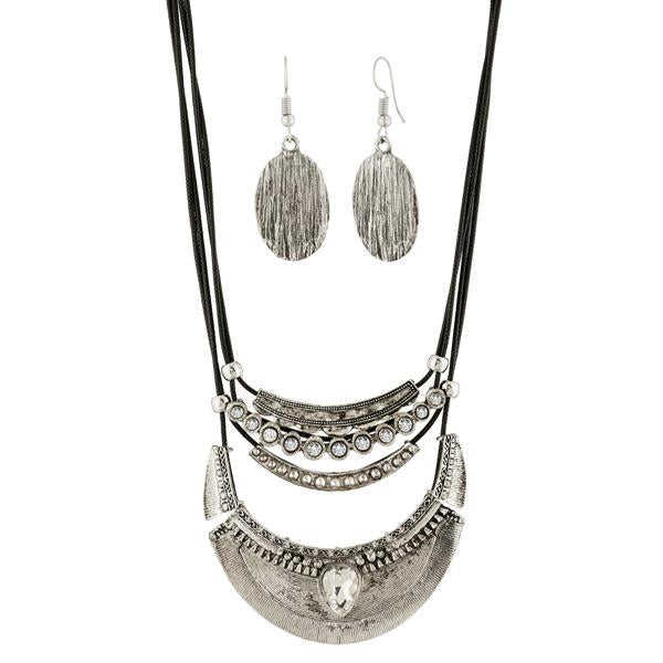 Urthn 1107408A Rhodium Plated Fine Jewelry Set Statement Necklace with Zircon & Copper 18K Gold Plate