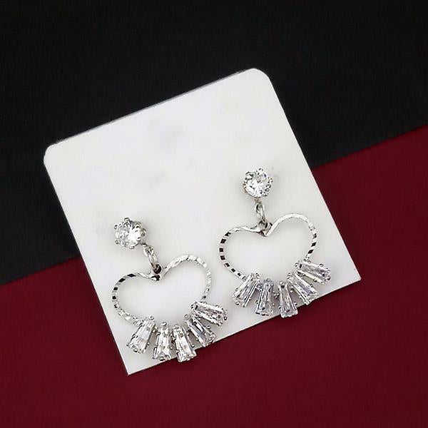Urthn AD Stone Heart Dangler Earrings Silver Plated with Gold Pearl Diamond Zircon for Weddings and Parties-1315859B
