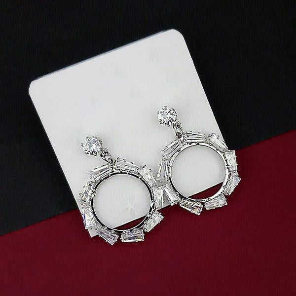 Urthn Ethnic Style Silver Plated AD Stone Drop 1315850B-for Weddings Parties Featuring Tassel Pattern Brass Pearl Diamond