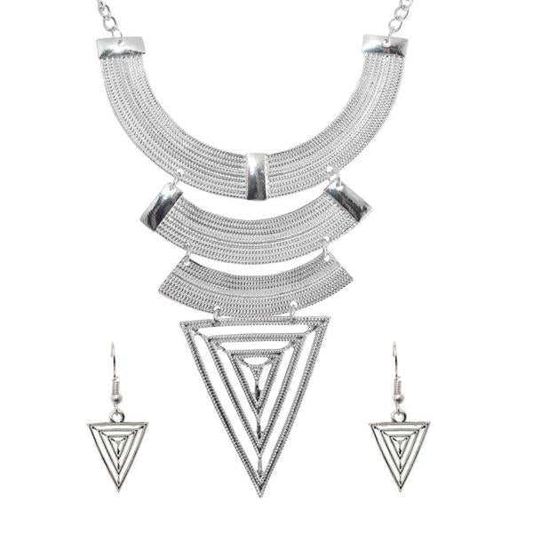 Urthn Fine Jewelry Set-1107404B Silver Plated Geometric Costume Necklace with Gold Plated Earrings Made Stainless Steel Copper