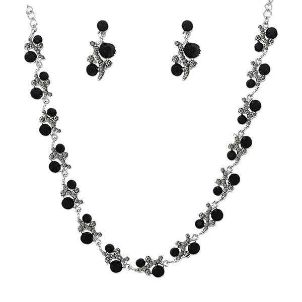 Urthn Fine Jewelry Set Black Austrian Stone Silver Plated Necklace 1103803