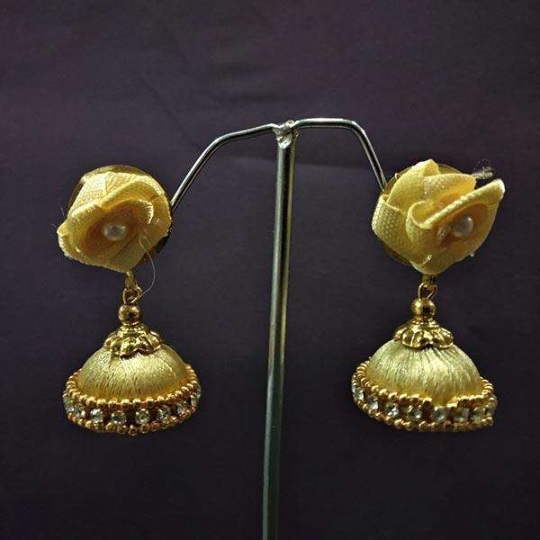 Urthn Gold-Plated Alloy Jhumki Earrings Ethnic Floral Thread Drop Earrings with Pearls Diamonds 1313437E Fashion Accessory
