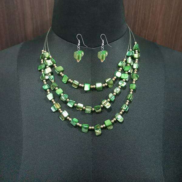 Urthn Green Stones Fashion Jewelry Set Silver Plated Statement Necklace-1109616C