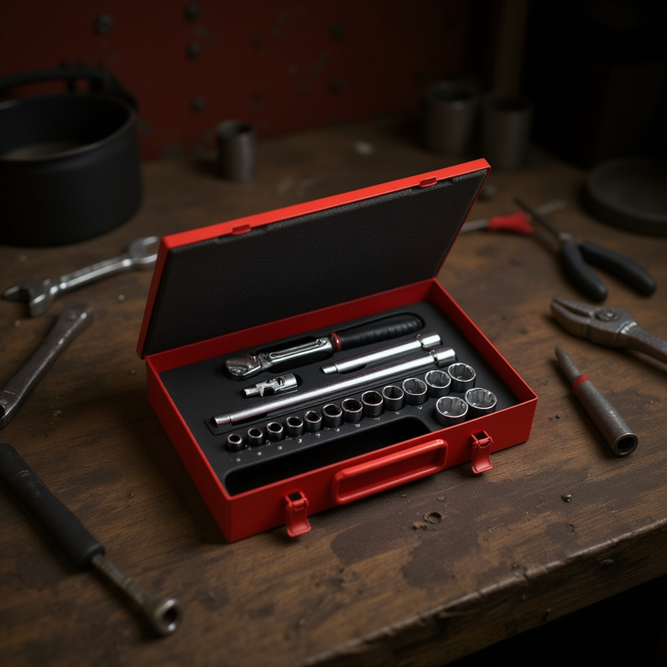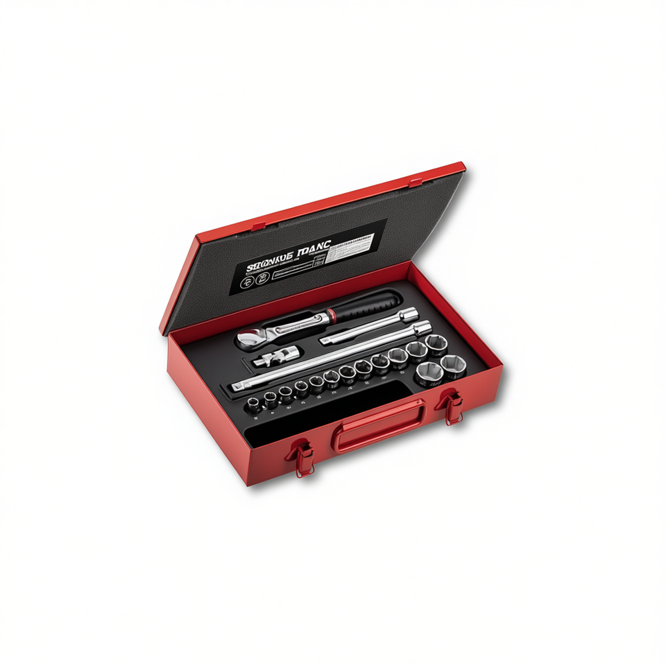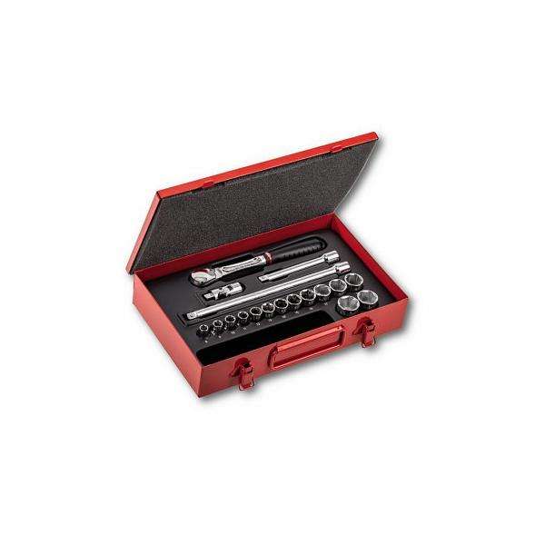 Usag 18-Piece Assorted Socket Set in Sheet Steel Box with Hexagonal Sockets