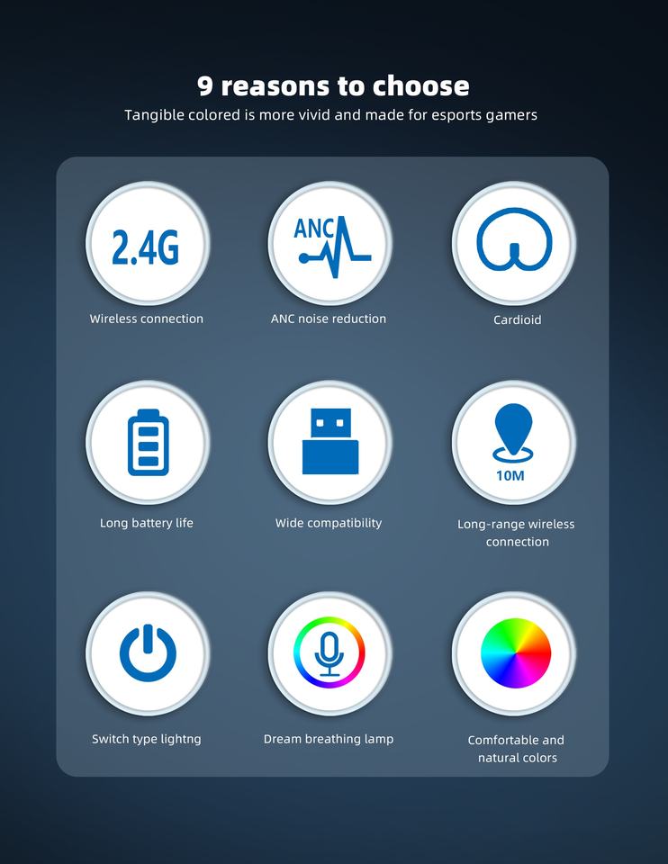 Light-weight, Condenser Microphone, USB Microphone, With RGB lighting, Portable, Noise CancellingFeature